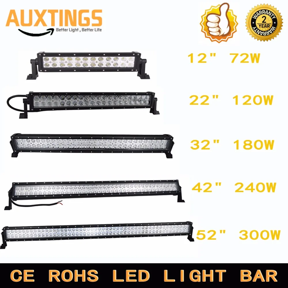 Promo 12"22"32"42"52" inch dual row straight led work light bar 72W 120W 180W 240W 300W offroad car led l